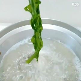 熱湯にわかめをくぐすと、一瞬で真緑になります!