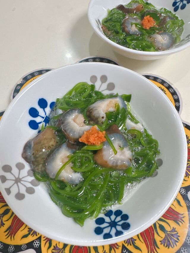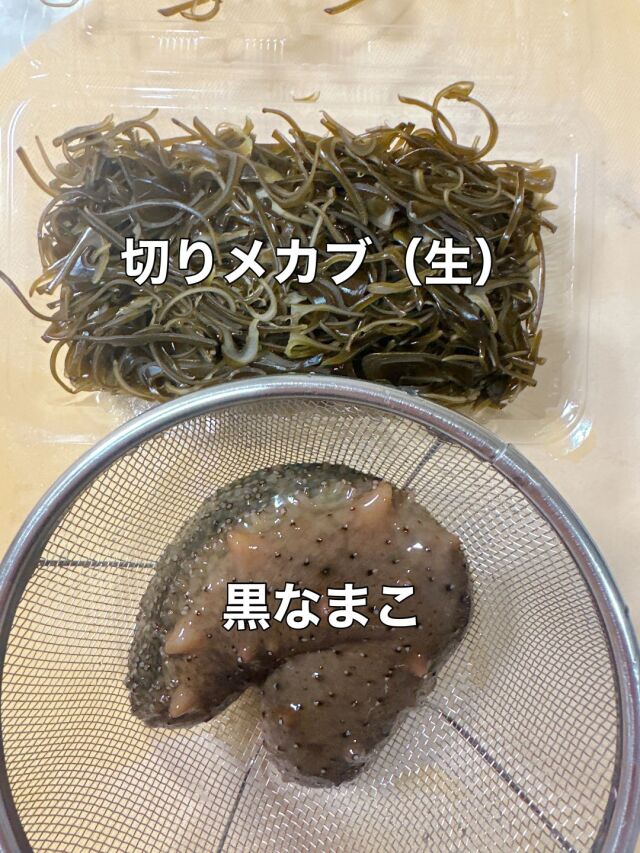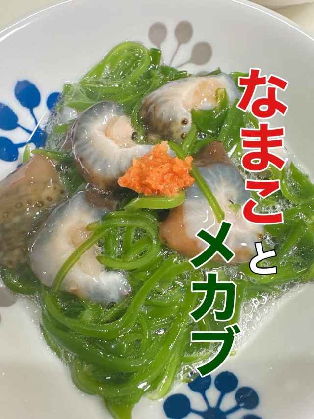 カットしたなまこと、湯通ししたメカブをあえて、三杯酢でいただくと、実に美味しい旬の和え物ができあがります!