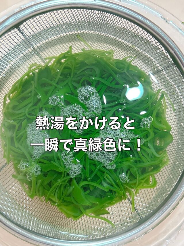 ●切りメカブ…熱湯を通すと、一瞬で真緑色に変化します!